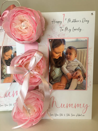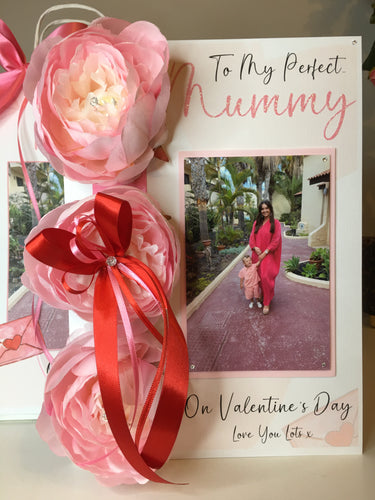 Artificial Peony Hearts & Floral Luxury Photo Card