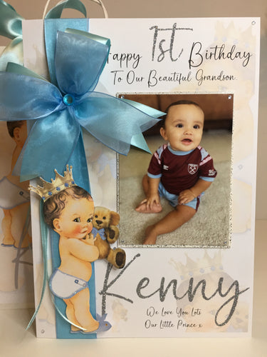 Ribbon & Bow Baby Prince Pop Up Photo Card