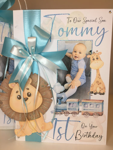 Ribbon & Bow Safari Animal Train Lion Pop Up Photo Card