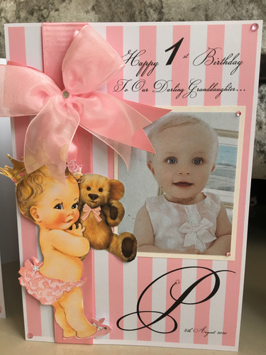 Pink/White Stripe Princess with bear Pop Up Luxury Photo Card