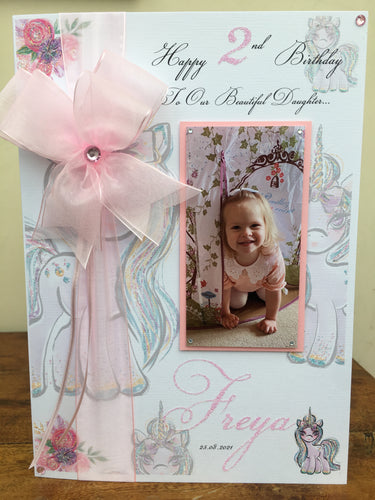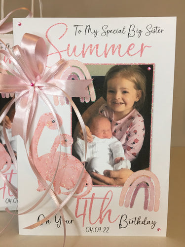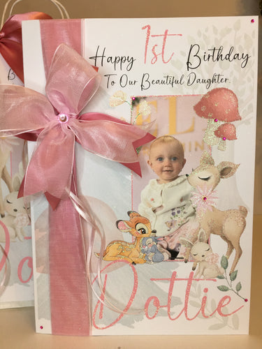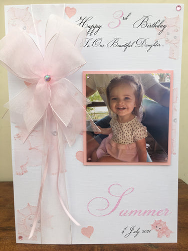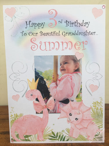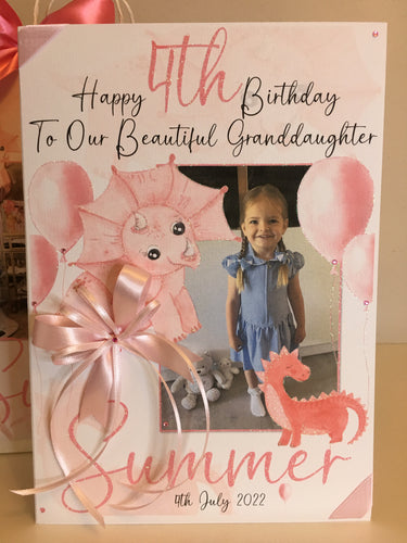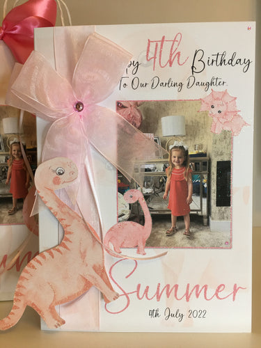 Ribbon & Bow Pink Dinosaur Pop Up Photo Card