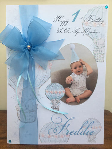Ribbon & Bow Blue Hot Air Balloon Photo Card