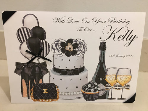 Cake, Balloons, Heels, Bag Birthday Theme Landscape Card