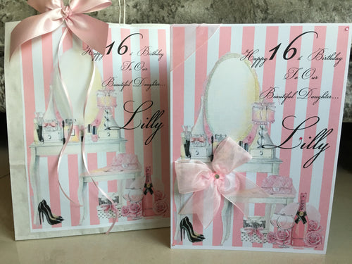 Pink & White Stripe Dressing Table Card