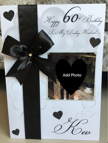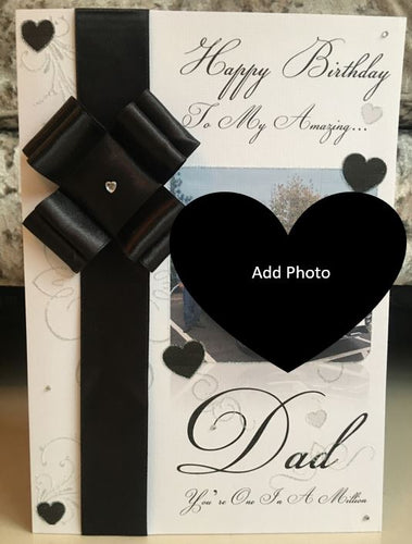 Ribbon & Bow Black and White Hearts Luxury Photo Card