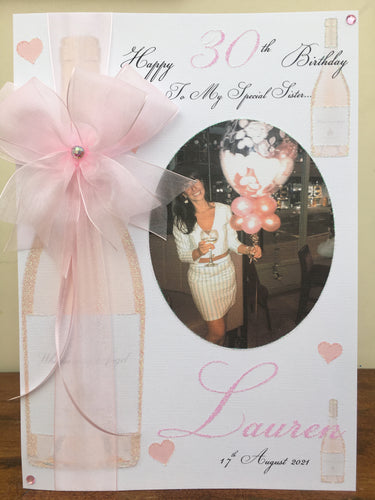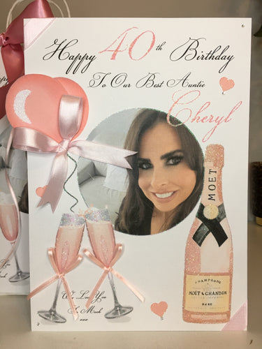 Ribbon & Bow Pink with Hearts Luxury Photo Card
