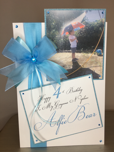 Ribbon & Bow Blue Photo Pop Up Card