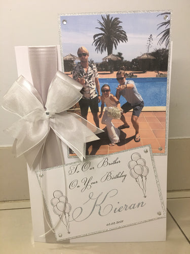 Ribbon & Bow Silver Photo Pop Up Card
