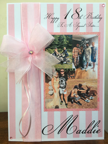 Ribbon & Bow Pink/White Stripe Photo Card