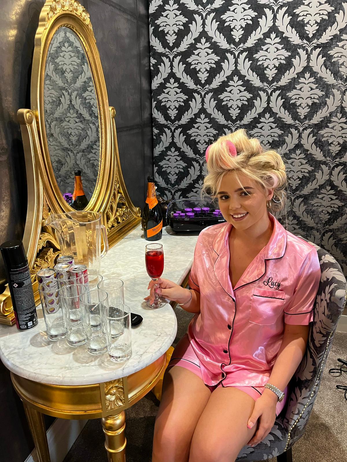 Our Stunning Satin Short Set Pyjamas with black piping are personalised with Embroidery