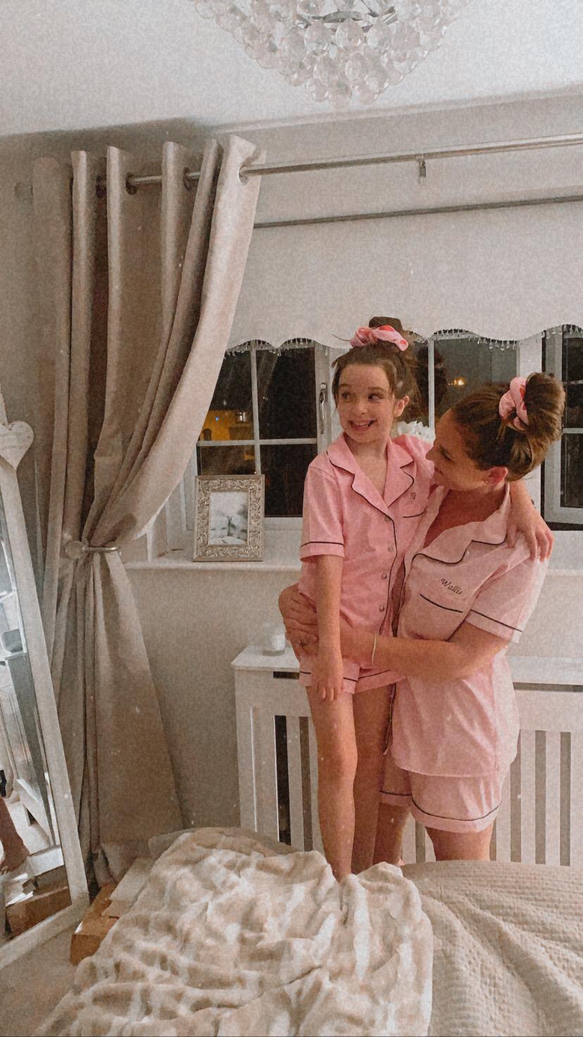 Our beautiful Pink Cotton Short set Pyjamas with black piping are personalised with Embroidery and are available in Children's and Adult sizing